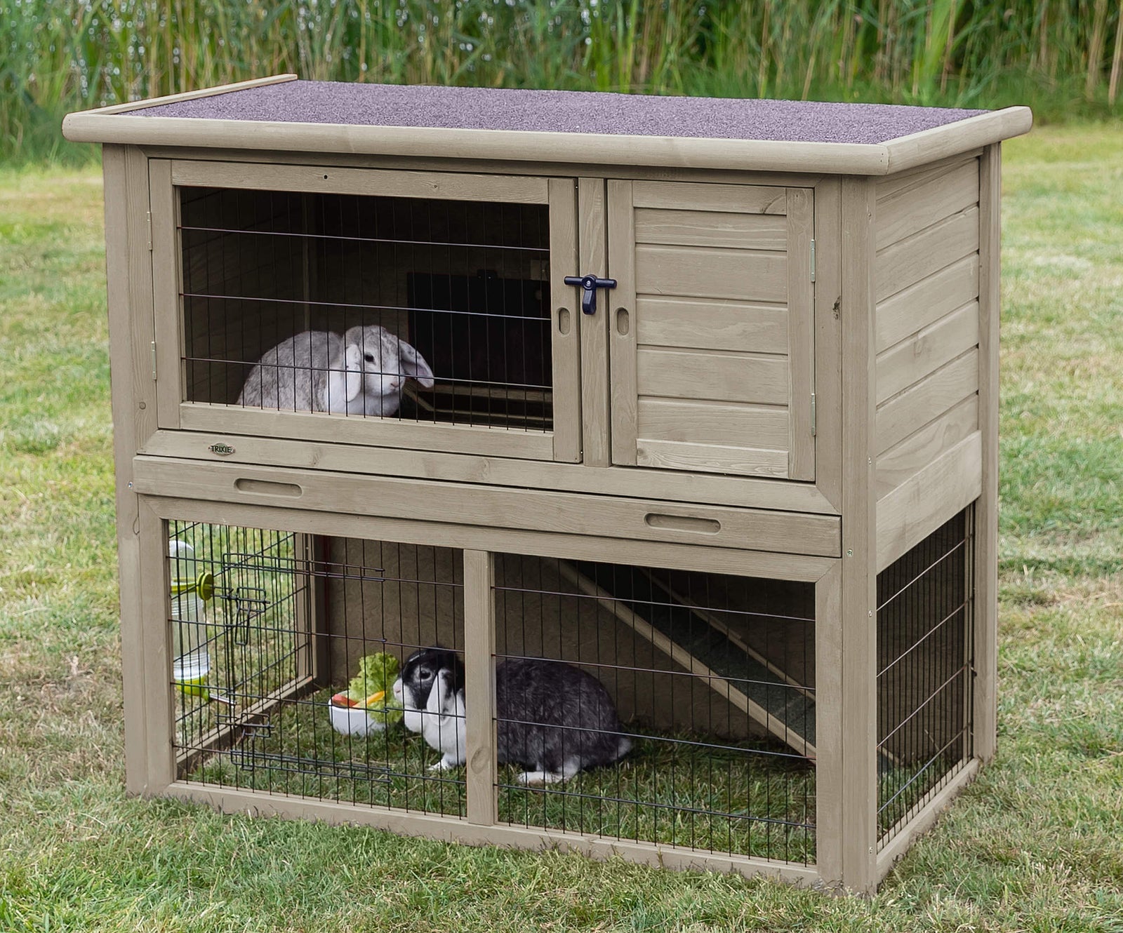 Trixie natura small animal hutch with outdoor run, 116 X 97 X 63 cm, grey-green