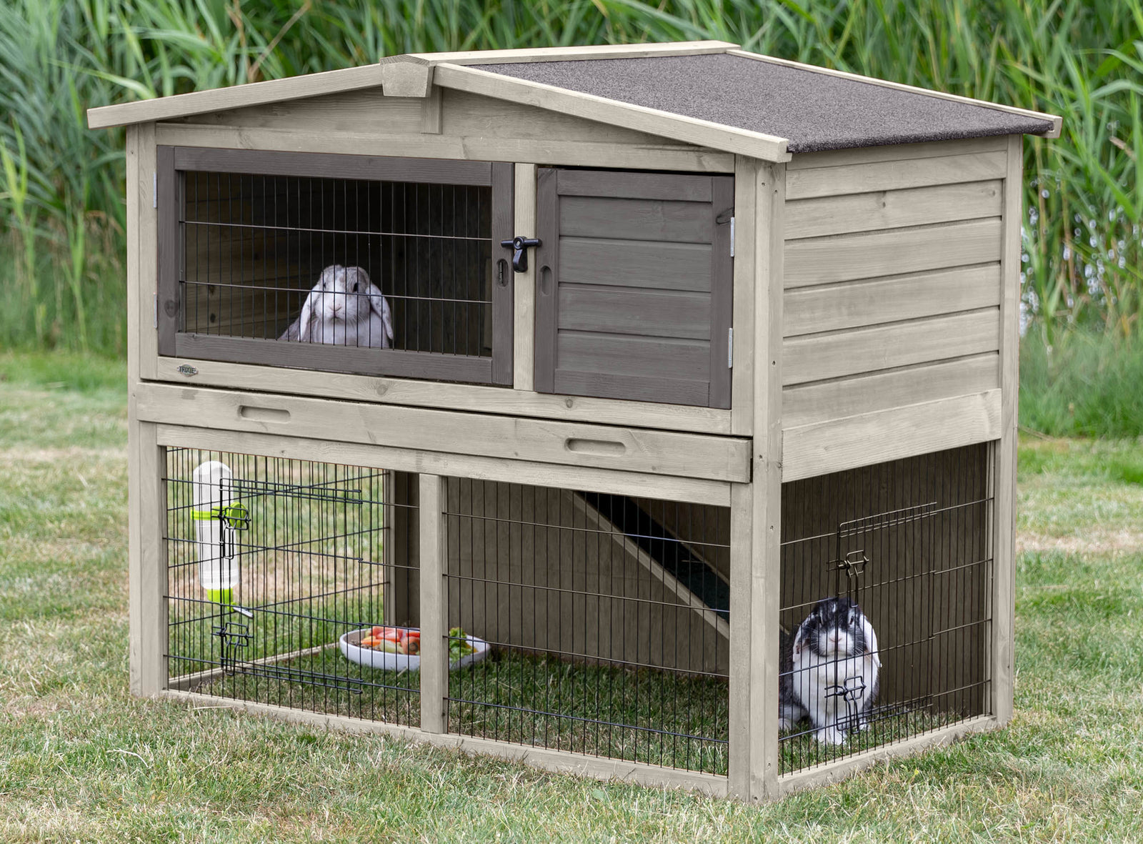 Trixie natura small animal hutch with outdoor run, 124 X 102 X 78 cm, grey/brown