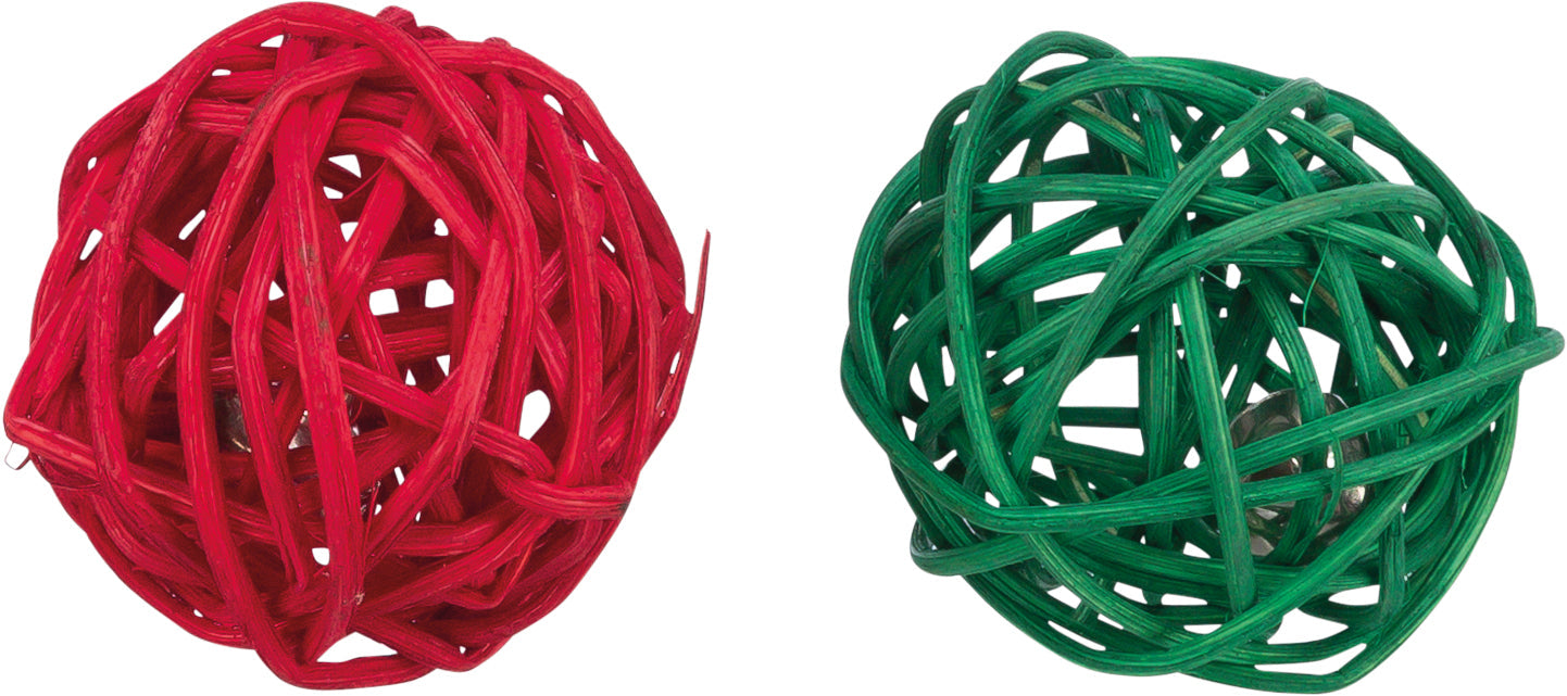 Trixie 2 Xmas balls with bell, rattan, diam. 4 cm