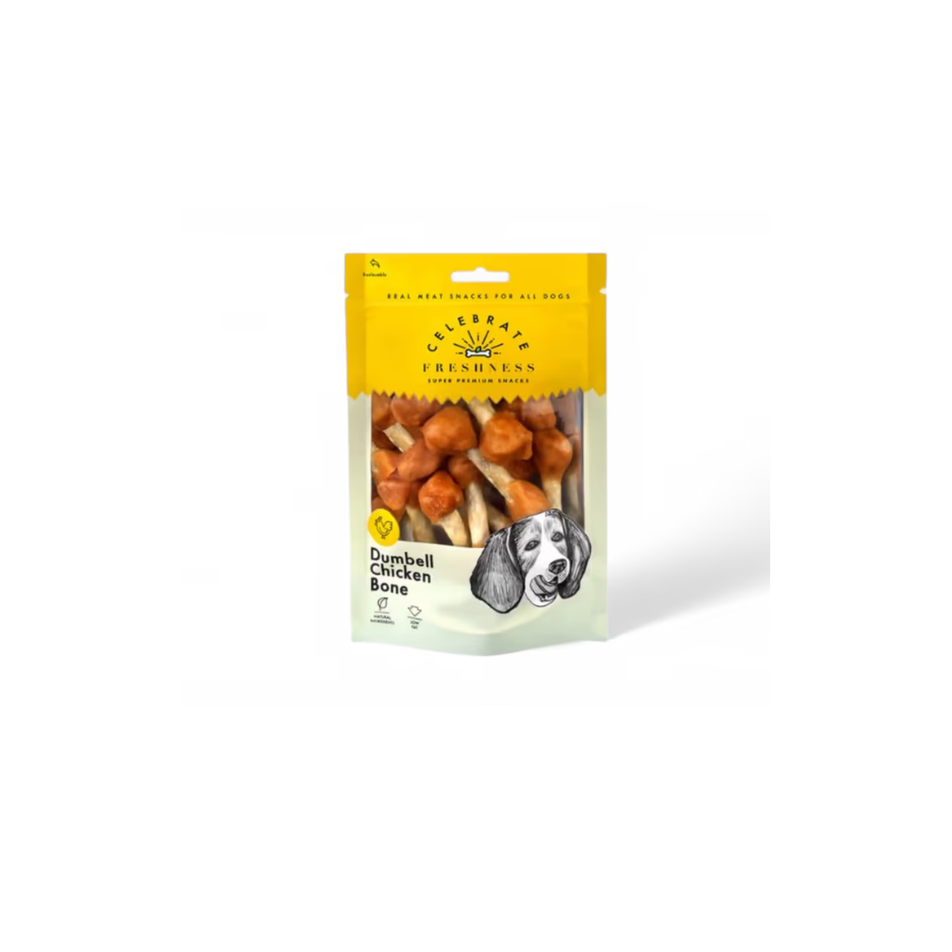 Indulge your dog with the elevated taste and premium quality of Celebrate Freshness Dumbbell Chicken Bone—a gourmet-style treat crafted for pets who appreciate something truly special. Each piece pairs a tender, aromatic chicken wrap with a firm natural bone centre, creating an irresistible combination of flavour and texture. Designed to satisfy chewing instincts while delivering high-quality protein, these elegant dumbbell-shaped delights make every treat moment feel like a celebration of freshness, wellness, and pure enjoyment.