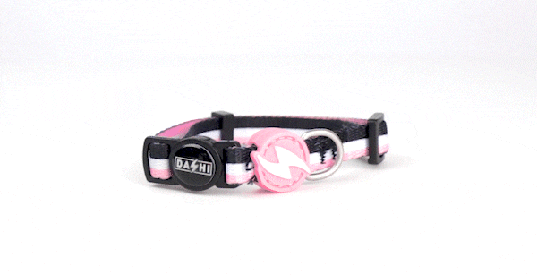 Our cat collars are made from resistant polyester, fully adjustable, with an easy open buckle for your cat safety.