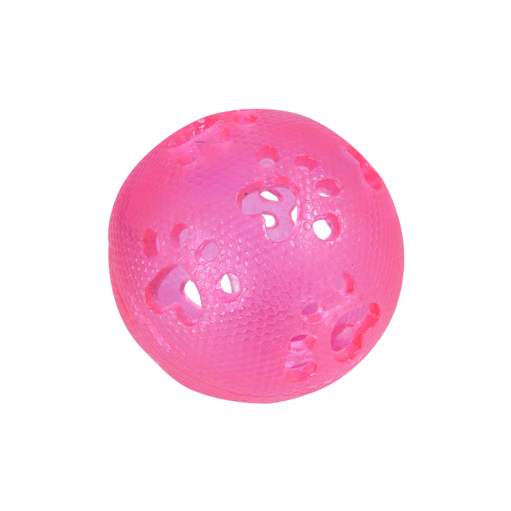 The openwork ball in the dog's paws is pink and has a diameter of approx. 7 cm .
