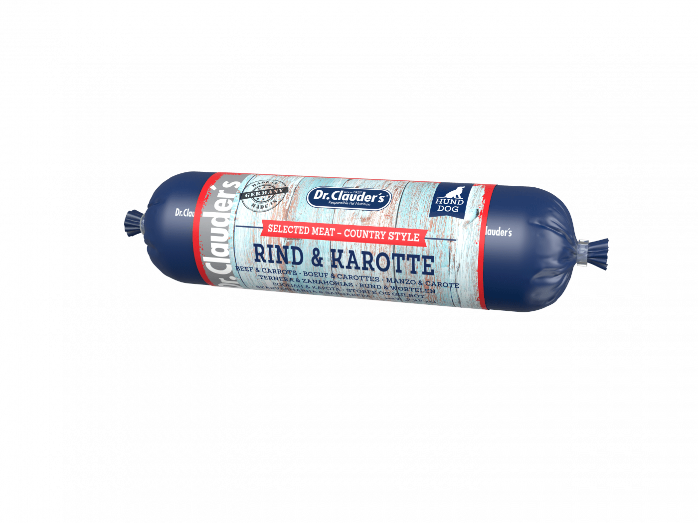 Dr.Clauder's Selected Meat Country Style is the perfect sausage-shaped wet food for dogs.