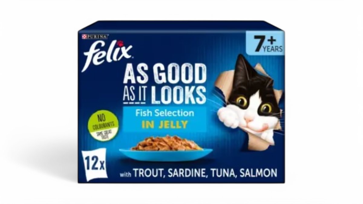 FELIX As Good As It Looks Senior Cat Fish Selection in Jelly has been specially formulated to meet the dietary needs of senior cats. Our delicious recipes include irresistible flavours of trout, sardine, tuna and salmon to add even more variety to your cat's diet as he grows older. As your cat gets older he'll need a diet to suit his ageing lifestyle, which is why our mouth-watering fish selection is great for fish-loving senior cats. We include high sources of protein with antioxidants, vitamins and minerals that have been carefully selected to support your cat in his senior years.